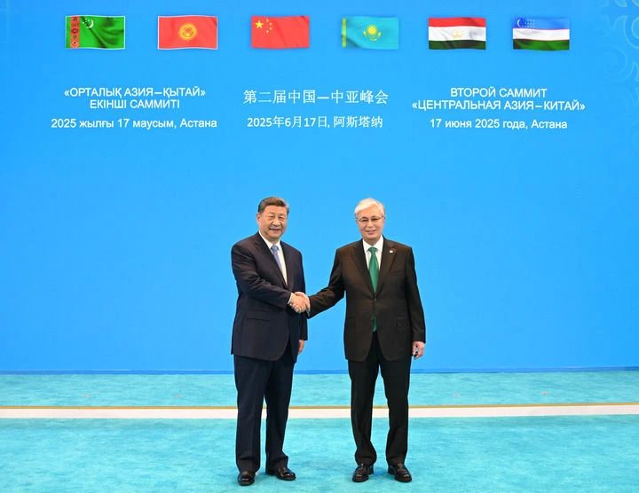 當?shù)貢r間6月17日下午,第二屆中國—中亞峰會在阿斯塔納獨立宮舉行。哈薩克斯坦總統(tǒng)托卡耶夫主持會議。中國國家主席習近平、吉爾吉斯斯坦總統(tǒng)扎帕羅夫、塔吉克斯坦總統(tǒng)拉赫蒙、土庫曼斯坦總統(tǒng)別爾德穆哈梅多夫、烏茲別克斯坦總統(tǒng)米爾濟約耶夫出席。元首們在友好氣氛中共同回顧西安峰會以來中國—中亞各領(lǐng)域合作成果,展望未來發(fā)展方向,一致決定弘揚“中國—中亞精神”,堅持永久睦鄰友好,攜手推動中國—中亞命運共同體建設(shè)不斷取得新成就。