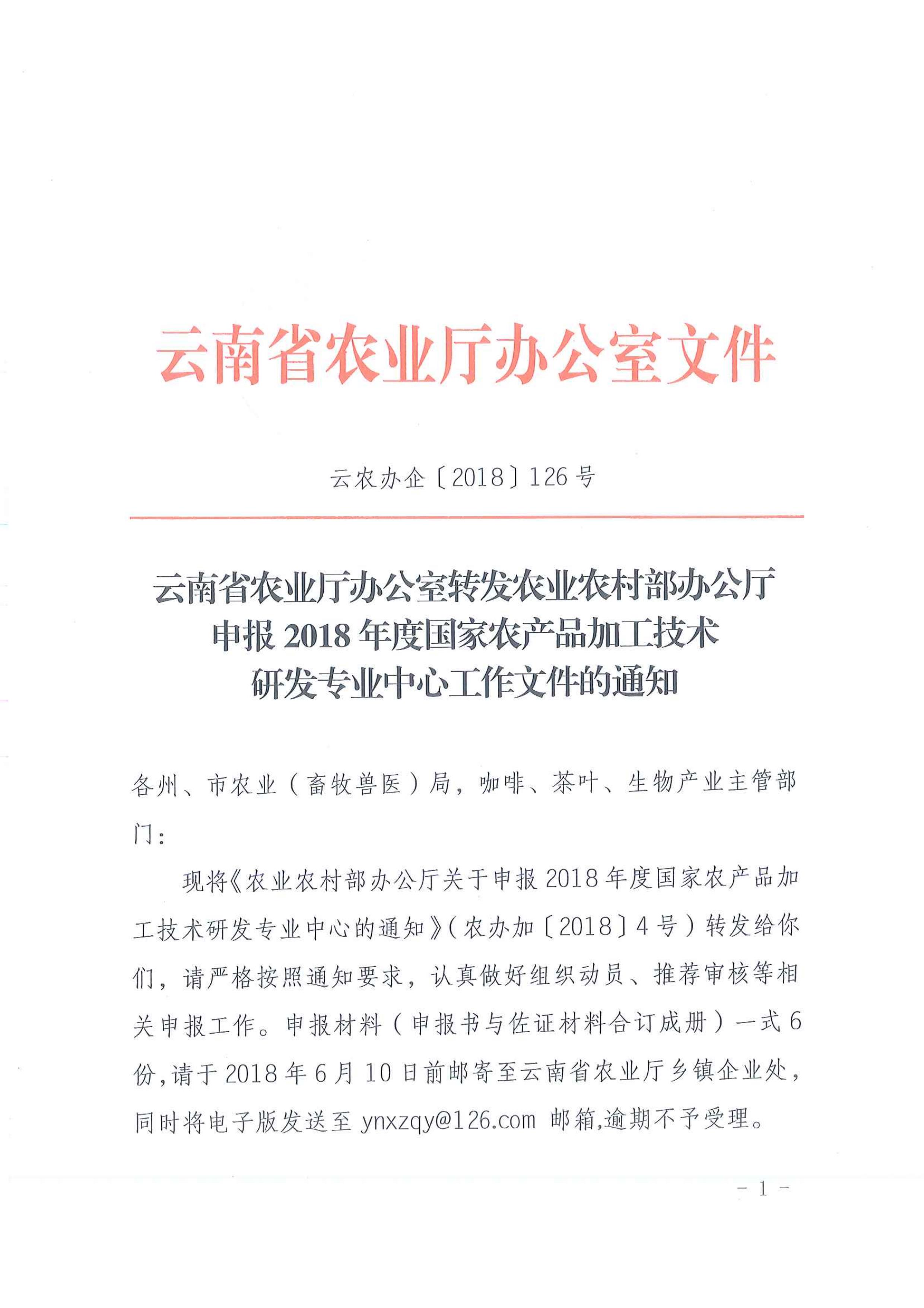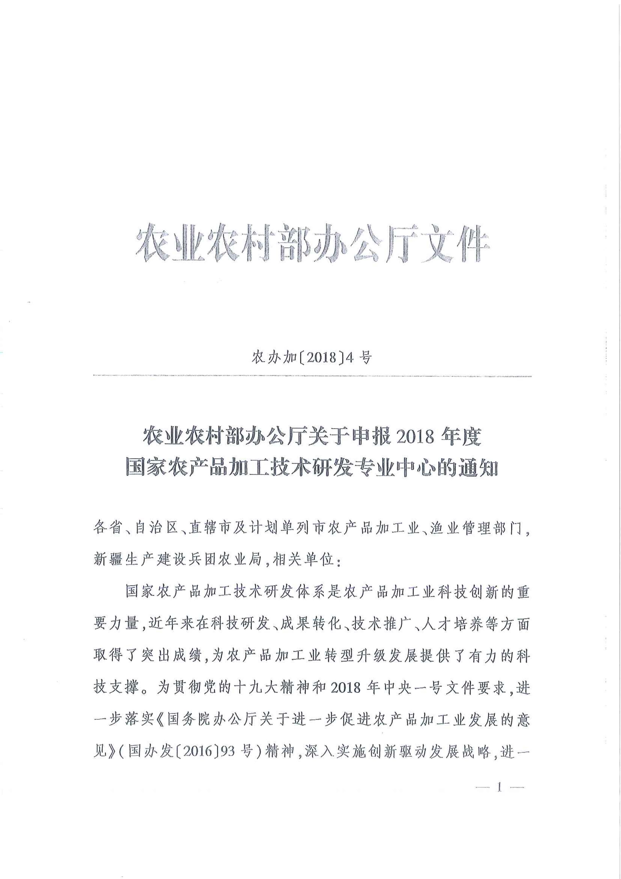 云南省農(nóng)業(yè)廳辦公室轉(zhuǎn)發(fā)農(nóng)業(yè)農(nóng)村部辦公廳申報(bào)2018年度國(guó)家農(nóng)產(chǎn)品加工技術(shù)研發(fā)專(zhuān)業(yè)中心工作文件的通知