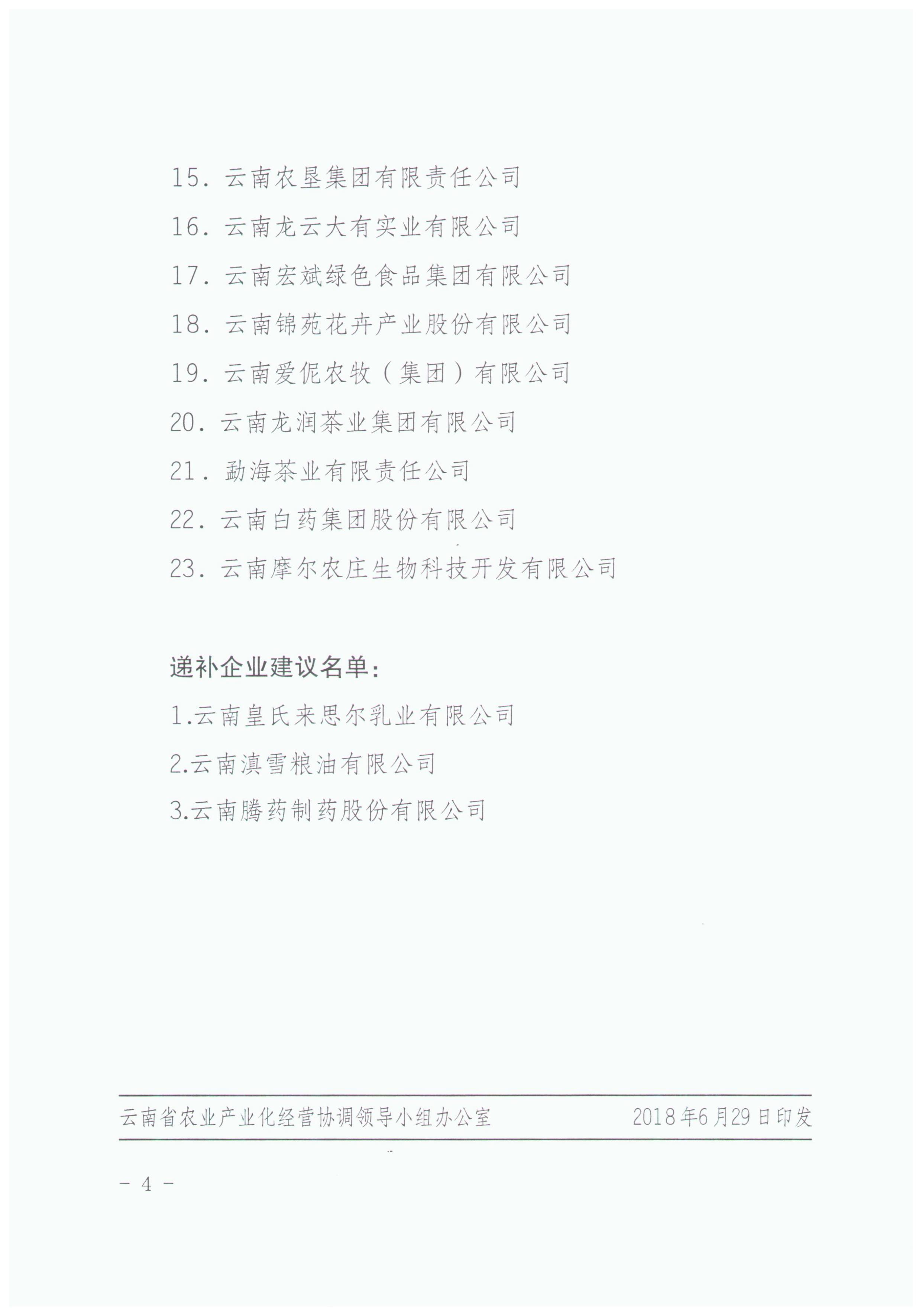 云南省農(nóng)業(yè)產(chǎn)業(yè)化國家重點(diǎn)龍頭企業(yè)運(yùn)行監(jiān)測合格和遞補(bǔ)企業(yè)建議名單的公示