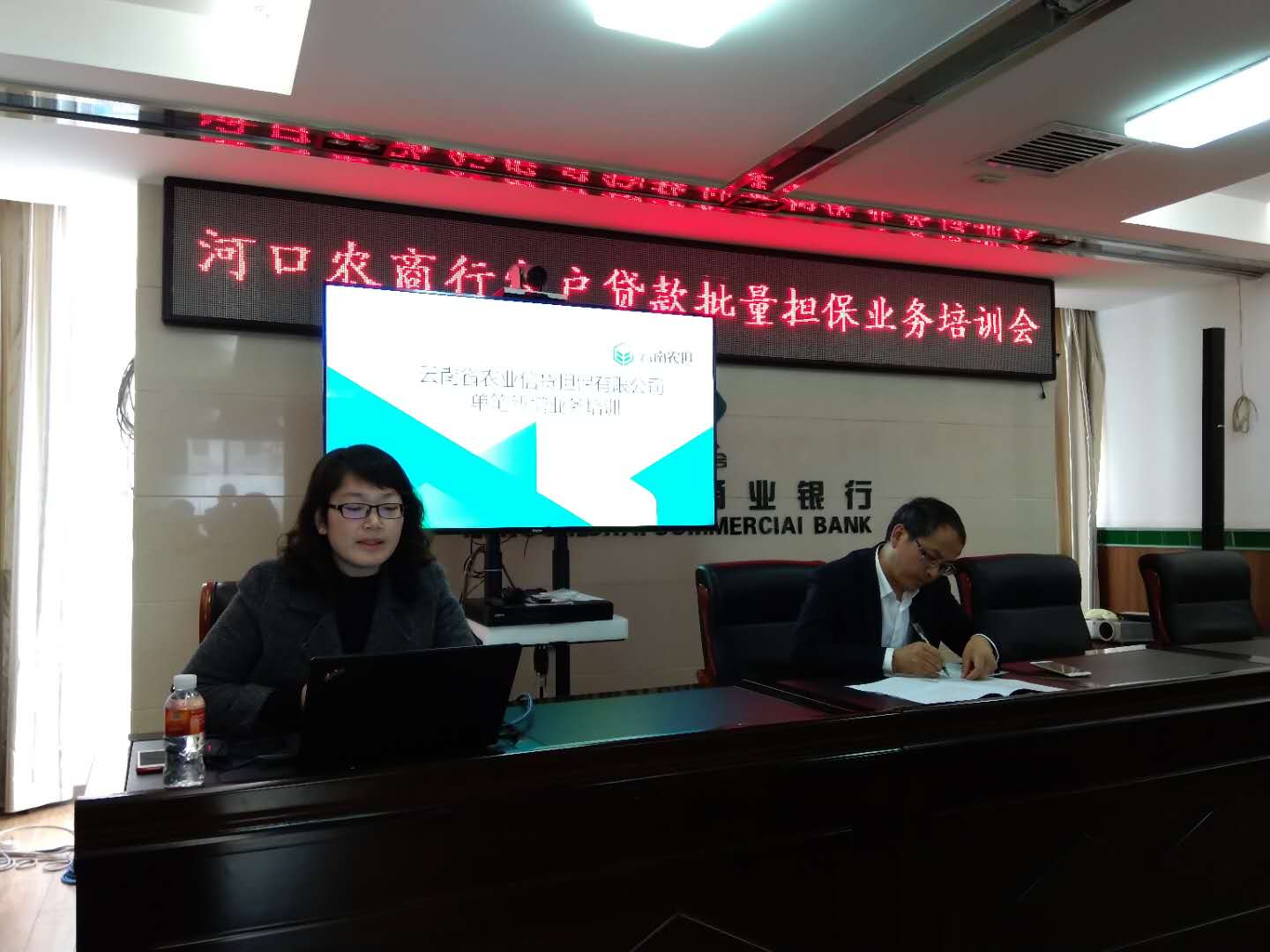 2019年1月16日下午,紅河辦事處工作人員姚燕一行受邀參加云南河口農(nóng)村商業(yè)銀行股份有限公司擔保業(yè)務(wù)培訓(xùn)會,河口農(nóng)商行行長李杰、信貸部經(jīng)理胡云、各支行網(wǎng)點信貸負責人參加了此次培訓(xùn)。