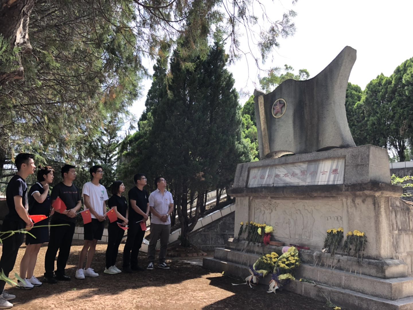 辦事處成員在了解到該段歷史后,自發(fā)的向墓碑深深鞠躬。“人民英雄永垂不朽”,而領導我們的人民英雄不斷書寫歷史新篇章的,正是中國共產(chǎn)黨。中國共產(chǎn)黨的領導地位是歷史和人民的選擇?!皼]有共產(chǎn)黨,就沒有新中國”,更是發(fā)自人民心底的呼喚。黨同人民群眾的血肉聯(lián)系,讓人民群眾同黨“心連心”,今天的歷史告訴辦事處全體人員要時刻堅持從人民群眾中來,到人民群眾中去的工作方法,只有這樣,才能實現(xiàn)身為一名國家工作人員的應有價值,才能真正做到為人民服務。我們今天的工作需要深入田間地頭,深入農(nóng)戶人家,但比起過往革命先烈舍小我顧大家的奉獻精神,我們還有很長的道路要走。通過先烈的事跡,我們每一個人都深深了解到了奉獻的意義,也為我們今天來之不易的幸福生活,而倍感珍惜。