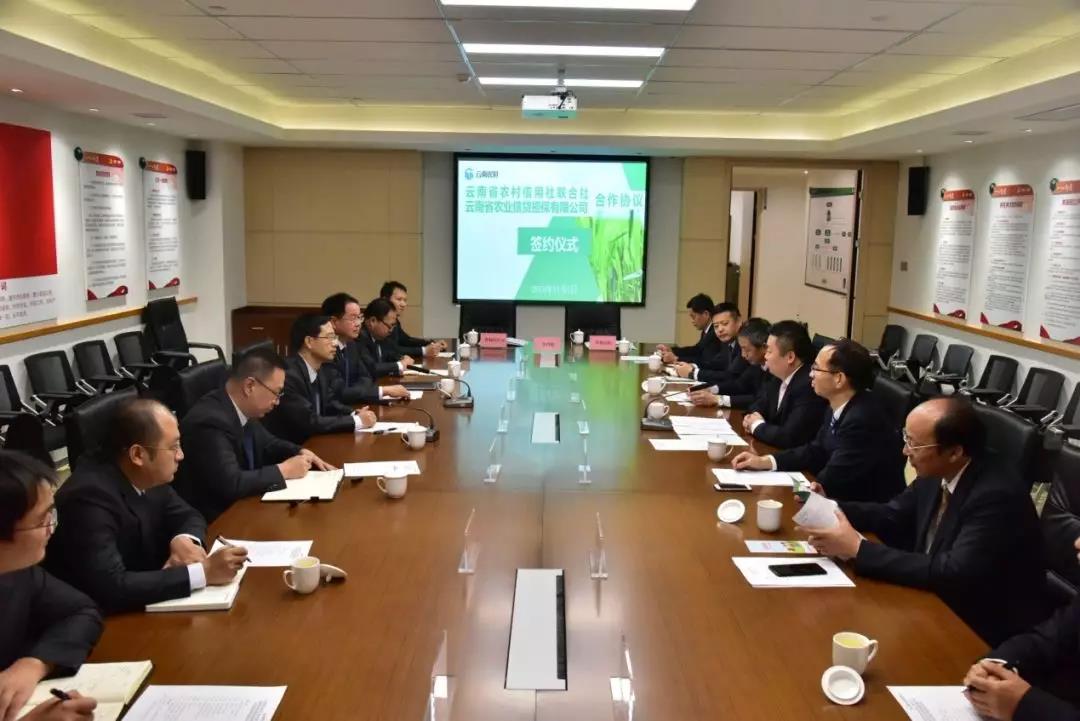 省農(nóng)信社副主任馬寧輝、李梅,省農(nóng)擔公司總經(jīng)理杜開波、副總經(jīng)理廖寅皓及雙方各有關(guān)部門負責同志參加了簽約儀式。此項儀式的成功舉行,標志著云南省最大的農(nóng)業(yè)信貸機構(gòu)與擔保機構(gòu)間強強合作,支持“三農(nóng)”發(fā)展、助力鄉(xiāng)村振興步入新階段,邁上新臺階。