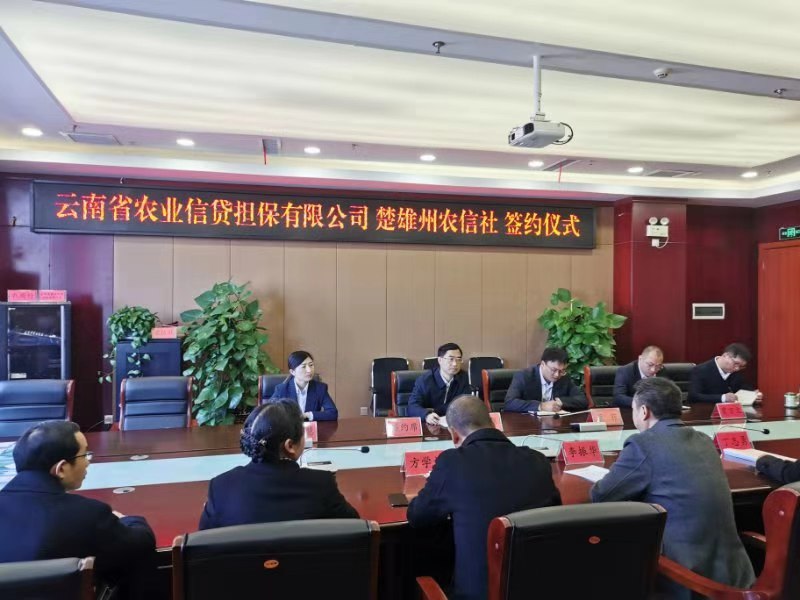 12月10日,楚雄州九縣一市縣級(jí)農(nóng)村信用合作聯(lián)社(農(nóng)商行)與云南省農(nóng)業(yè)信貸擔(dān)保有限公司2:8風(fēng)險(xiǎn)分擔(dān)銀擔(dān)合作協(xié)議簽署儀式在云南省農(nóng)村信用合作聯(lián)社楚雄州辦事處舉行。云南省農(nóng)村信用合作聯(lián)社楚雄州辦事處黨委書記、主任李振華出席并主持簽約儀式,農(nóng)擔(dān)公司董事長郭影,戰(zhàn)略發(fā)展部負(fù)責(zé)人蔡菲,農(nóng)擔(dān)二部負(fù)責(zé)人賈萬文攜楚雄辦事處成員參加,省聯(lián)社楚雄州辦事處副主任丁志勇、副主任方學(xué)林,各縣級(jí)聯(lián)社理事長(董事長)、主任(行長)全員出席簽約儀式。