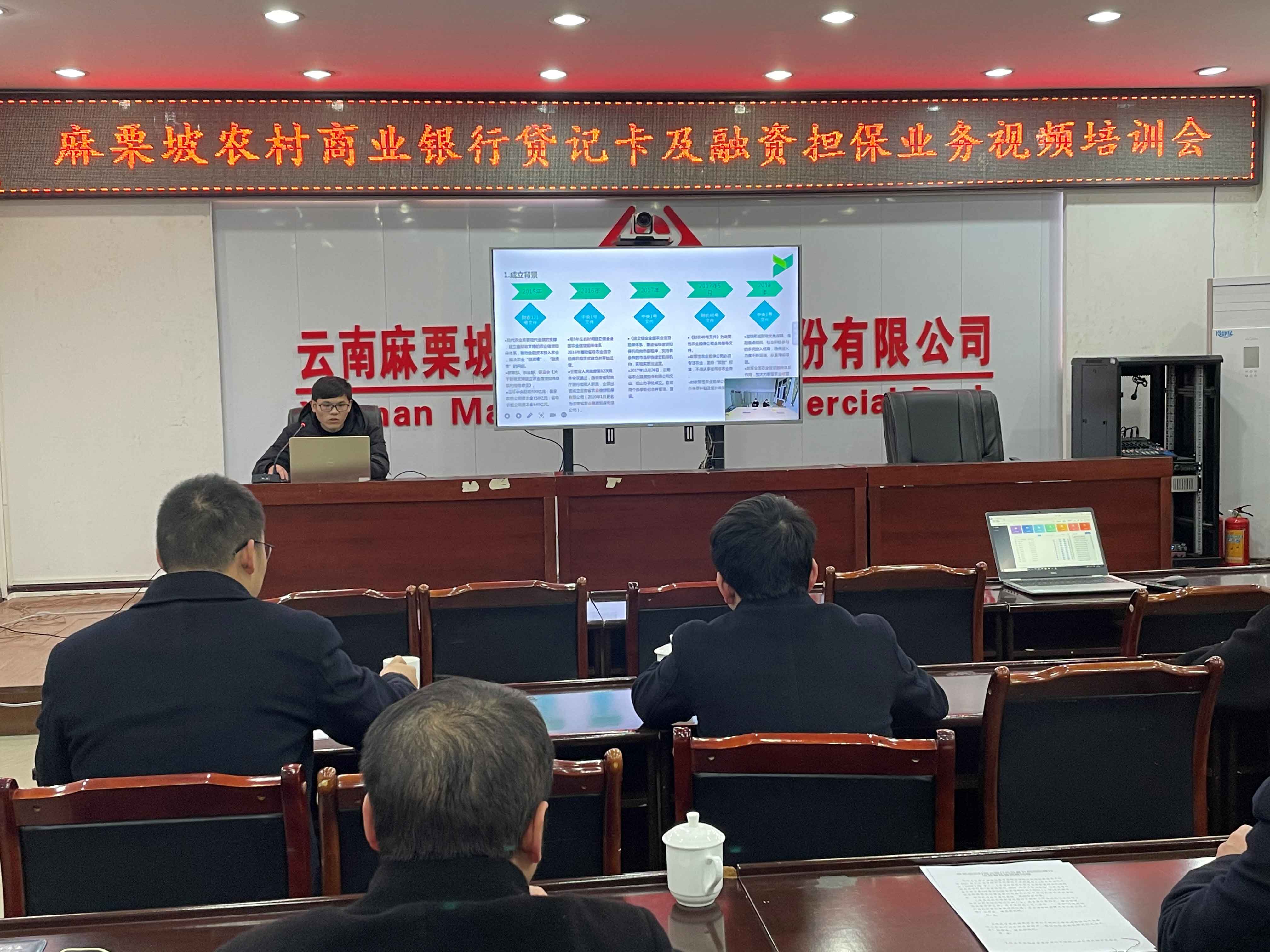 為持續(xù)深化務(wù)實(shí)合作,推動(dòng)實(shí)現(xiàn)共贏共擔(dān),2021年1月28日,文山辦事處項(xiàng)目經(jīng)理李立興、張曉倩、馮群淇一行參加了麻栗坡農(nóng)村商業(yè)銀行融資擔(dān)保業(yè)務(wù)視頻培訓(xùn)會(huì),會(huì)議由農(nóng)商行信貸部總經(jīng)理陳路平主持,文山辦事處項(xiàng)目經(jīng)理李立興主講,各基層行長及業(yè)務(wù)骨干參加。