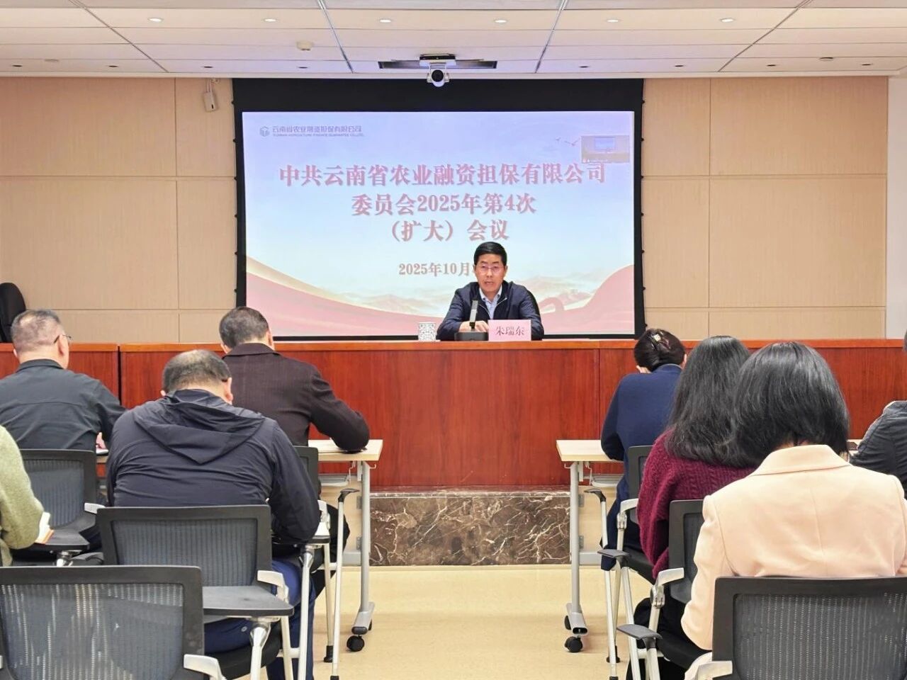 10月30日,云南農擔公司召開黨委(擴大)會議,傳達學習黨的二十屆四中全會精神,全面落實省委、省政府和省財政廳相關工作要求,研究布置公司貫徹落實舉措。公司黨委書記、董事長朱瑞東主持會議并講話,領導班子全體成員、部門中層管理人員現場參加會議,各分支機構主要負責人視頻參會。